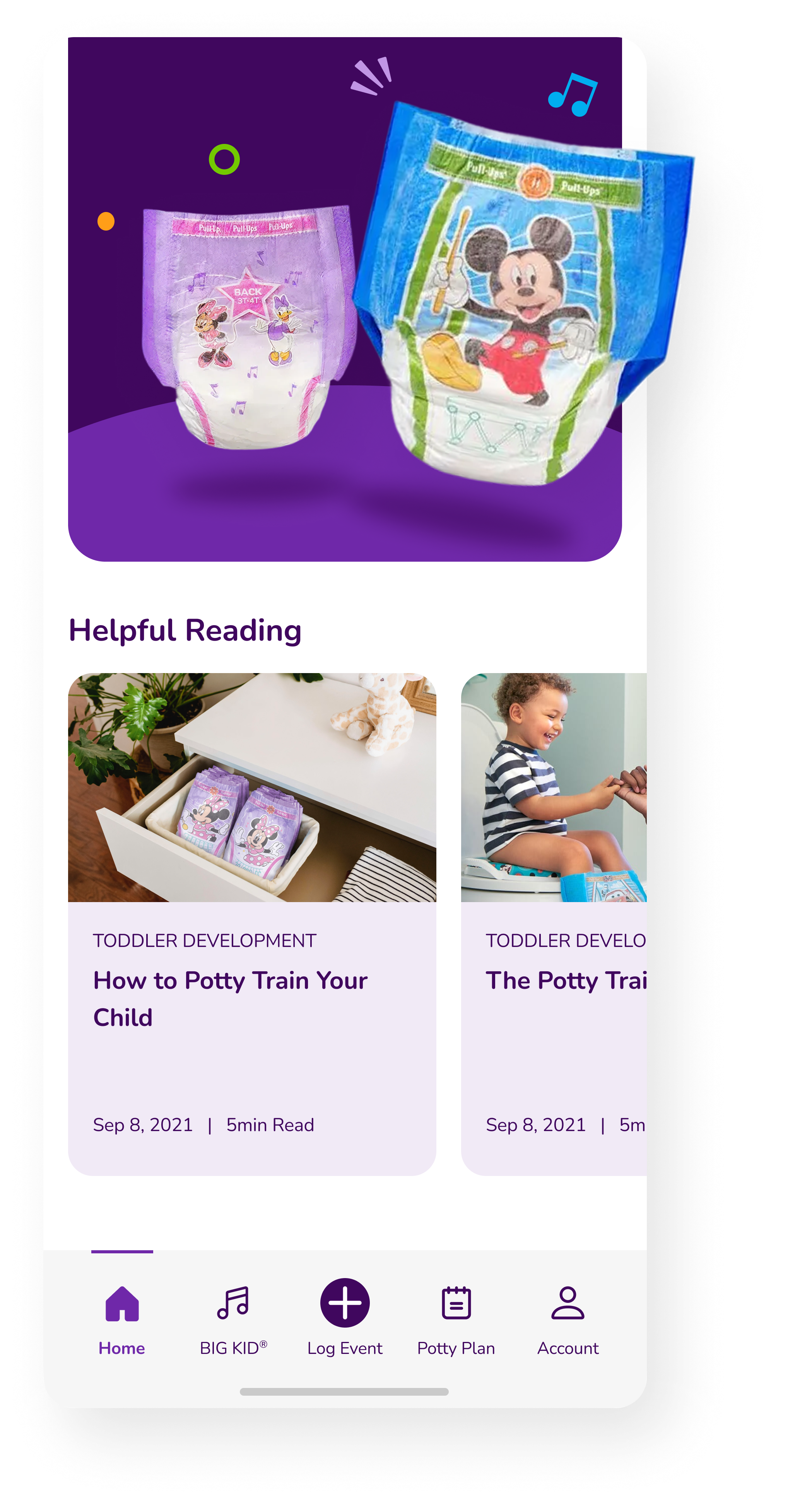 Potty by Pull-Ups is a music themed tracking and rewards app designed to empower and motivate parents and their Big Kids™ throughout the potty-training journey.